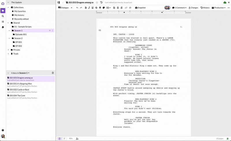 Scripto is free for up to 3 collaborators with our basic studio and screenplay formats. Sign up now and try it out!